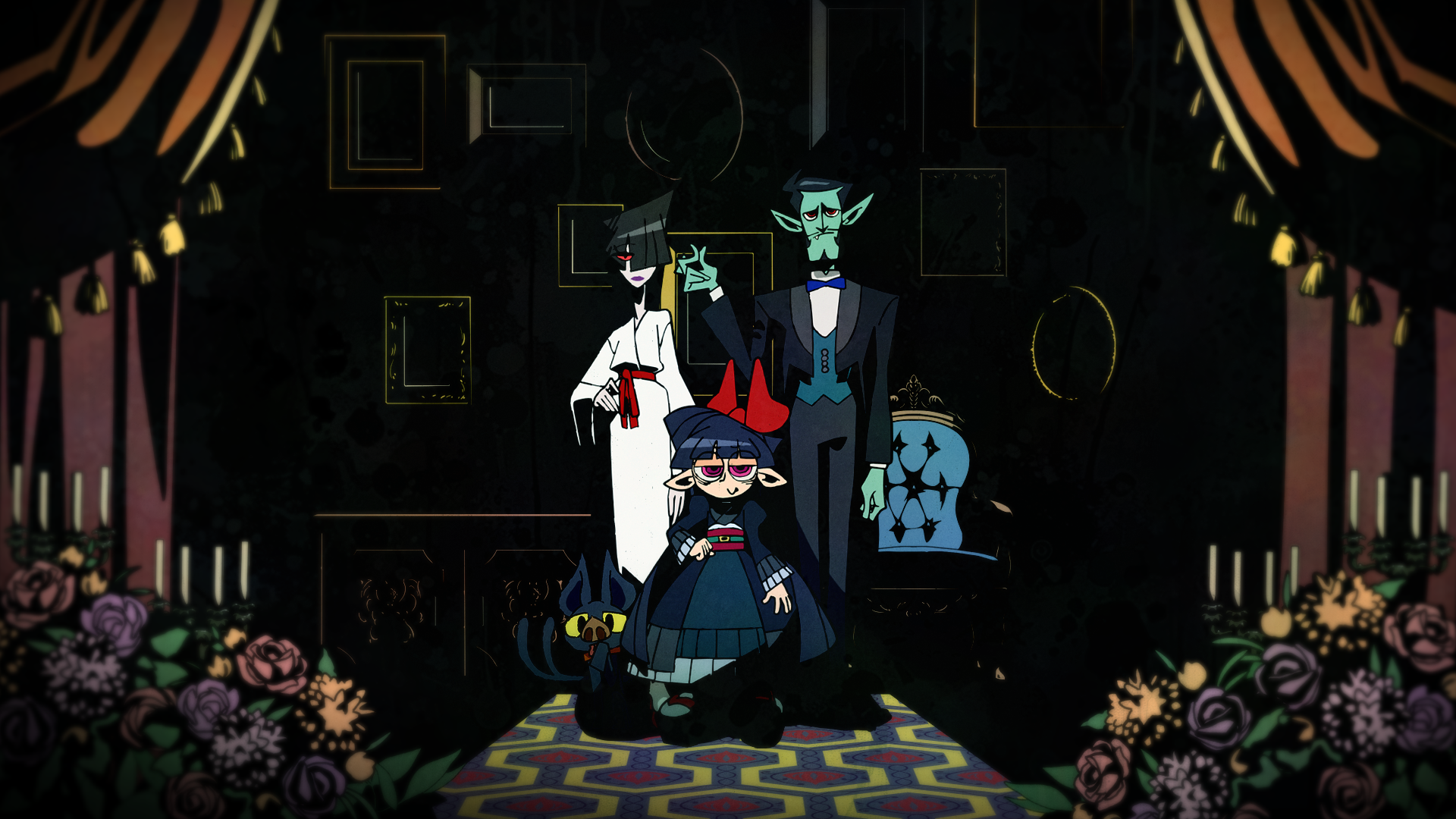 Szöveg: Egy ősi vámpír, aki évszázadok óta emberi vérrel táplálkozik, találkozik egy modern japán kísértettel, aki átkokat terjeszt televízió képernyőkön. E két lény, átívelve a Kelet és Nyugat határain, egy szeretetközösséget köt, amely egy lányt hoz létre, aki örökli vérüket és terrorjukat… A vámpír apuka… Dracule! A kísértet anyuka… Sayako! És lányuk… Alice! (Ne felejtsd el a titokzatos macskát, Dark Matter-t!) Üdvözöljük a Horrors család hátborzongató, ijesztő otthoni drámájában, ahol minden nap egy kiáltás!